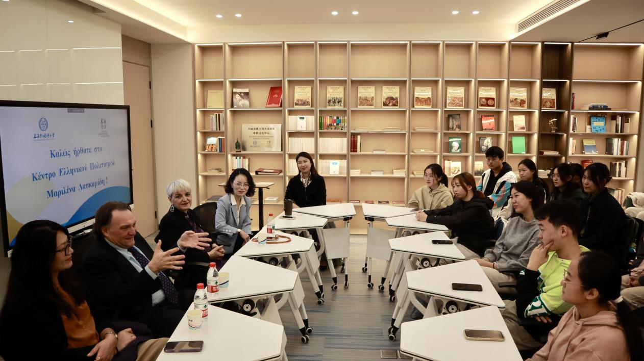 Στις 5 Νοεμβρίου, το Κέντρο υποδέχθηκε τον Αντιπρύτανη του Αριστοτελείου Πανεπιστημίου Θεσσαλονίκης, Καθ. Νικόλαο Μαγγιώρο, τις δύο διευθύντριες του Ινστιτούτου Κομφούκιος, κα. Ρούλα Τσοκαλίδου και κα. Wang Shaodi. Ο κ. Μαγγιώρος επαίνεσε το ενδιαφέρον των Κινέζων φοιτητών για την ελληνική γλώσσα και τους κάλεσε να σπουδάσουν στην Ελλάδα, προκειμένου να γνωρίσουν εκ των έσω την ελληνική κοινωνία και παιδεία. Η κα. Τσοκαλίδου αναφέρθηκε στη συμβολή του Ινστιτούτου Κομφούκιος ως γέφυρας συνεργασίας μεταξύ των δύο πανεπιστημίων, ενώ η κα. Wang παρουσίασε το πρόγραμμα αλληλογραφίας «Be You», ενθαρρύνοντας τους φοιτητές να συμμετάσχουν σε αυτήν τη δημιουργική πρωτοβουλία πολιτιστικής ανταλλαγής.