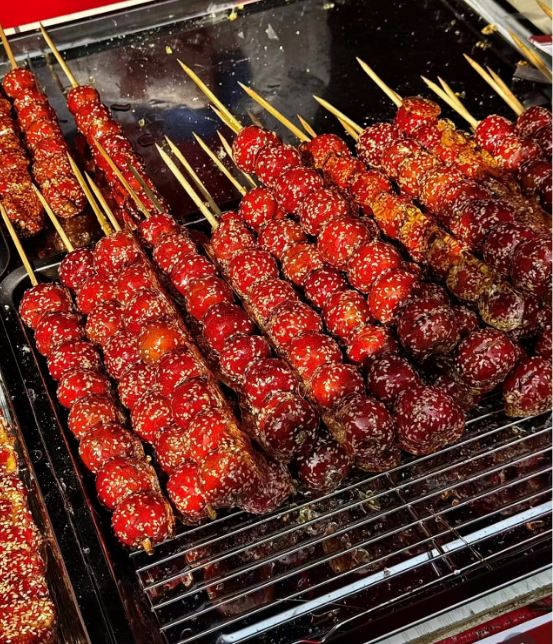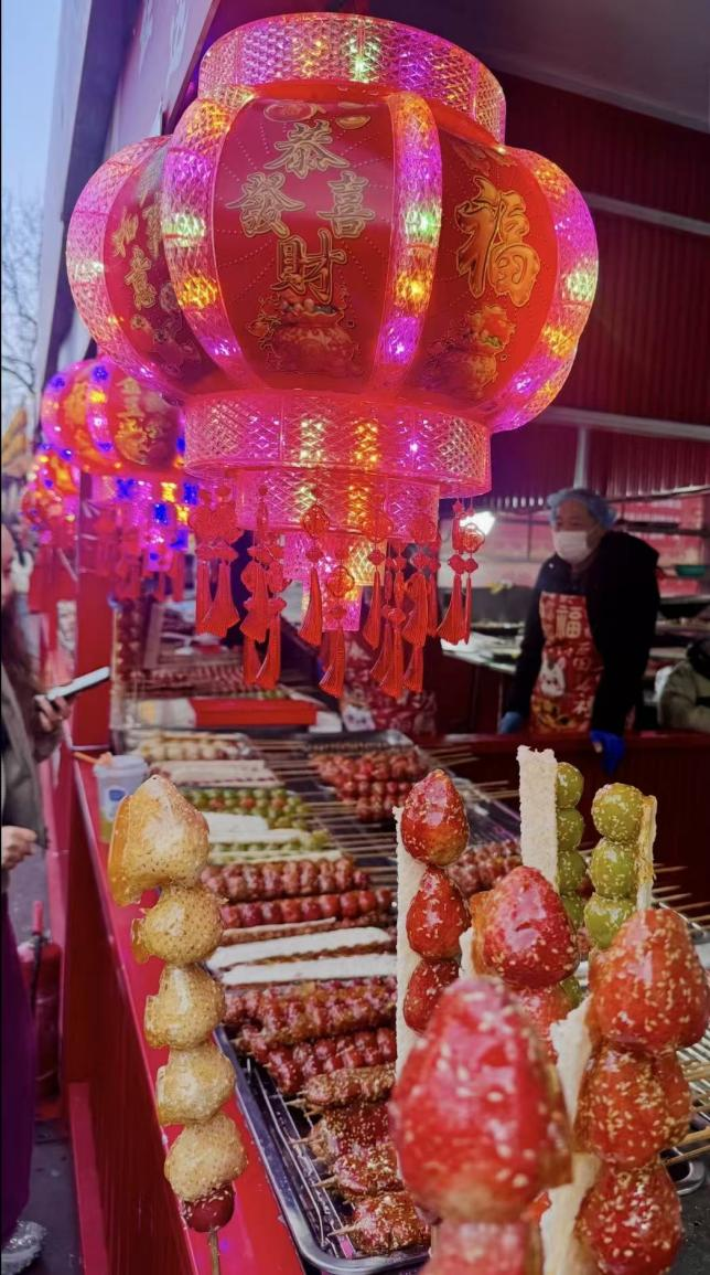 Το έθιμο Tang Qiu Hui(Γιρτή Καραμελωμένων Φρούτων σε ξυλάκι) είναι μια παράδοση στην πατρίδα μου, την παραθαλάσσια πόλη Qingdao. Συνήθως γίνεται στις 16 του πρώτου σεληνιακού μήνα της Κίνας και διαρκεί αρκετές μέρες. Είναι μια ντόπια γιορτή για τον ερχομό της νέας χρονιάς.
